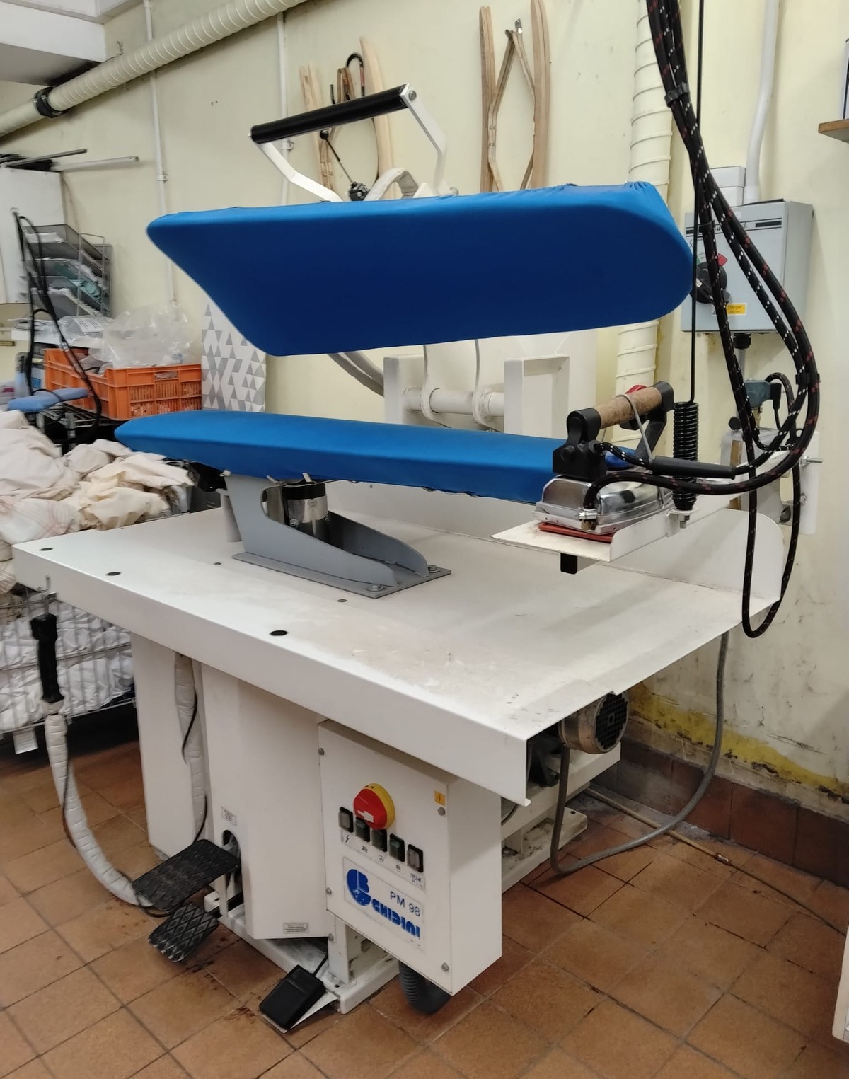 Ghidini pm98 steam press.3 phase electrics with suction and built in boiler including iron and steam gun.